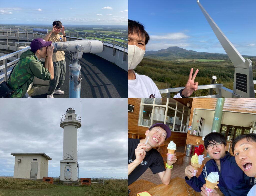 大会前日にメンバーのみかんさん、ばっしーとともに新千歳空港から飛行機で中標津空港まで移動。時間があったのでレンタカーで丘の上から330度パノラマを見ることができる開陽台展望台へ。