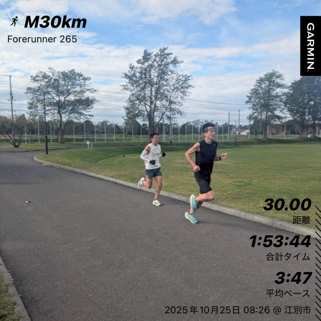 25㎞過ぎてたむちゃんが明らかに速いので少しペース落として残り5㎞は単独走💦