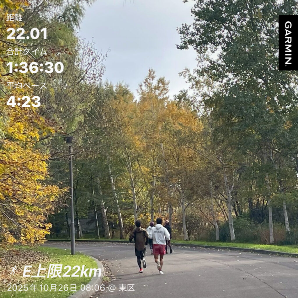 来週はフードバレーとかちハーフがあるので、この日(つくば4週間前)がつくば組にとって週末ロング走をするラストチャンス。