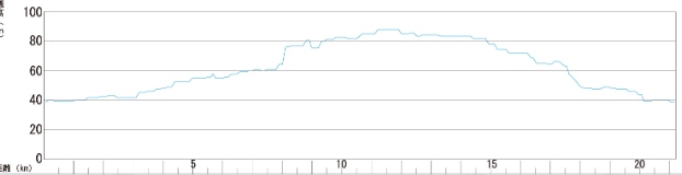 緩やかな上りの1~8km目までは4´15~18/km