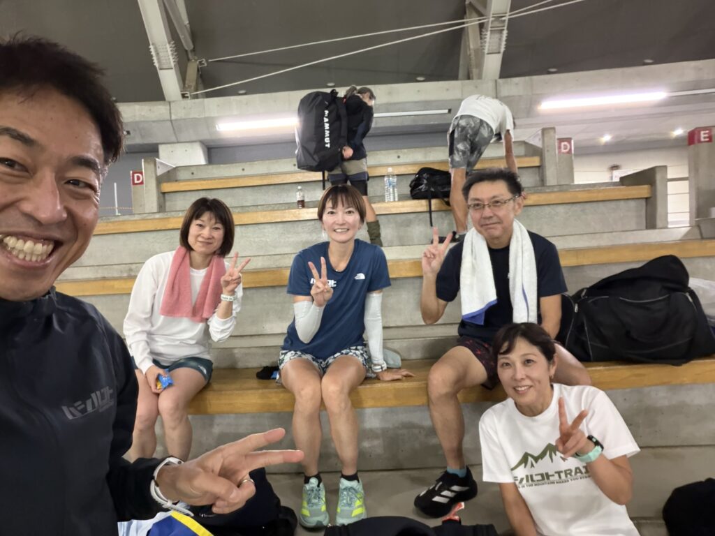 つくば前のメンバーはRで200m疾走・200mレスト、その後10分の閾値走。